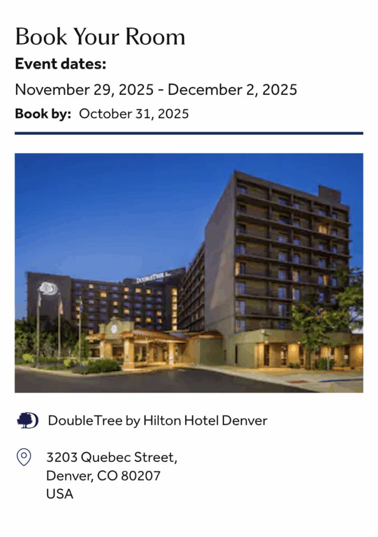 This year we have partnered with the Double Tree Hotel Denver. This is a great option whether you’re coming from Co Springs, Foco, The Western Slope, or out of state!